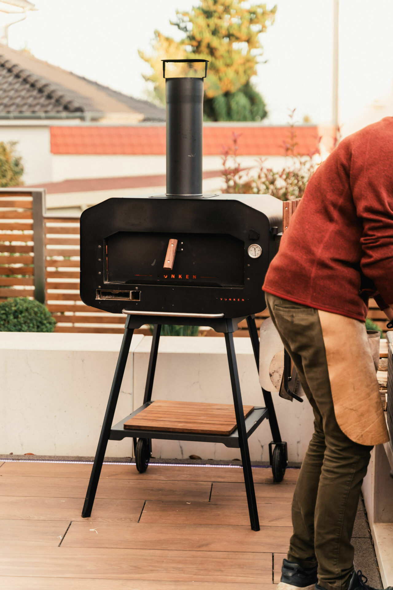 Chaque Vonken Home est livré avec un équipement premium : briques céramiques de 50 mm, brasero haute résistance, cendrier de cuisson, porte avec poignée en bambou et thermomètre intégré.